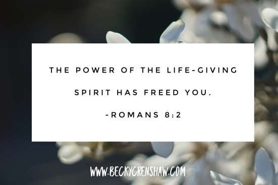 And….This is a continual thing. A renewing of our minds OVER AND OVER until NEW patterns are formed and we walk more habitually in the FREEDOM Christ died to grant us. This daily walk is called sanctification and it is a life-long gig. So be patient and kind to yourself!
