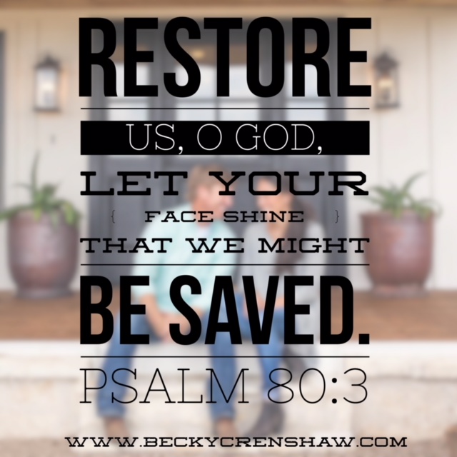 And our sweet, broken world can’t help but cry…. “RESTORE US, O GOD; LET YOUR FACE SHINE THAT WE MIGHT BE SAVED. ” PSALM 80:3