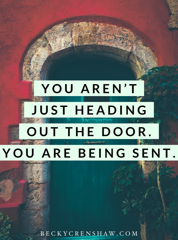 Before you go, know that you are not just heading out the door. You are being sent to prepare the way. You are the light of Christ in a world filled with spotlights, followers and shares. Sometimes “center stage” is really stage left, behind the scene or even clean up crew. Becoming less and less feels counter intuitive, I know, but done in the humility of Christ, His life becomes greater in you.