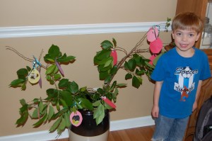 Activity: “Make an Easter picture tree. Anchor a small branch in a pot. Have your kids look through magazines and cut out images that remind them of Jesus.” – Thriving Family magazine