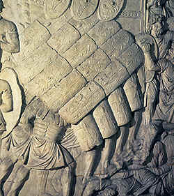 Roman soldiers were trained to lock shields in formation, creating an impenetrable defensive wall bristling with spear points. When shields were locked in place, they would march forward as a whole, advancing the enemy. They called it a Tortoise formation. Unstoppable.
