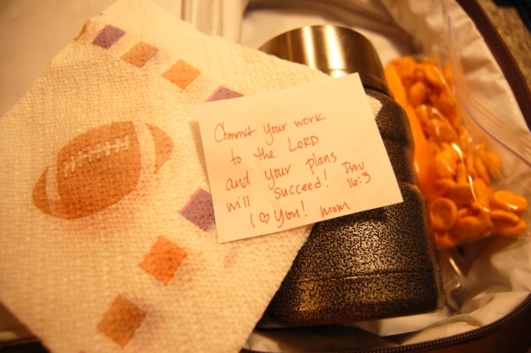 Its name? The idea is to intentionally sow little seeds of faith each week into their lunch bag. The boys may think they are getting an encouraging word from mom, but all the while, I am feeding them the Bread of Life.