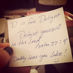 D is for DELIGHT!! Delight yourself in the LORD, Lukie!!