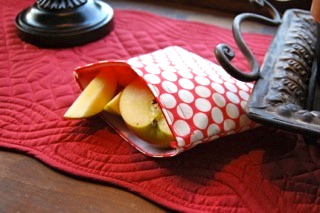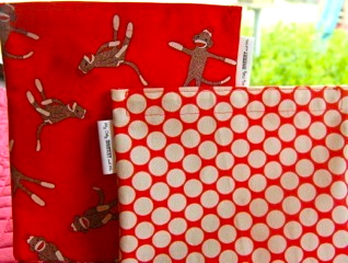 Amanda says these are, “great for those trying to be a little more Eco-Friendly!!! You’ll be able to stop using all those plastic snack bags. This reusable snack bag set includes 1 large sandwich/snack bag featuring Moda’s Sock Monkey fabric and 1 medium snack bag featuring Amy Butler’s Full Moon Dots in cherry both are lined with water-resistant red nylon for easy clean up. A large piece of velcro keeps your snacks secure.