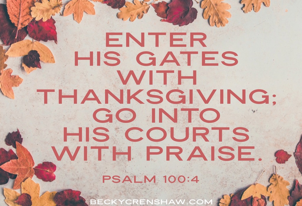 Journal: What things cause you to stay outside the gate? How can you set those things aside and make space to move into this season of thanksgiving? Offer a prayer asking the Lord to help you remain mindful of His invitation to enter into His gates today.