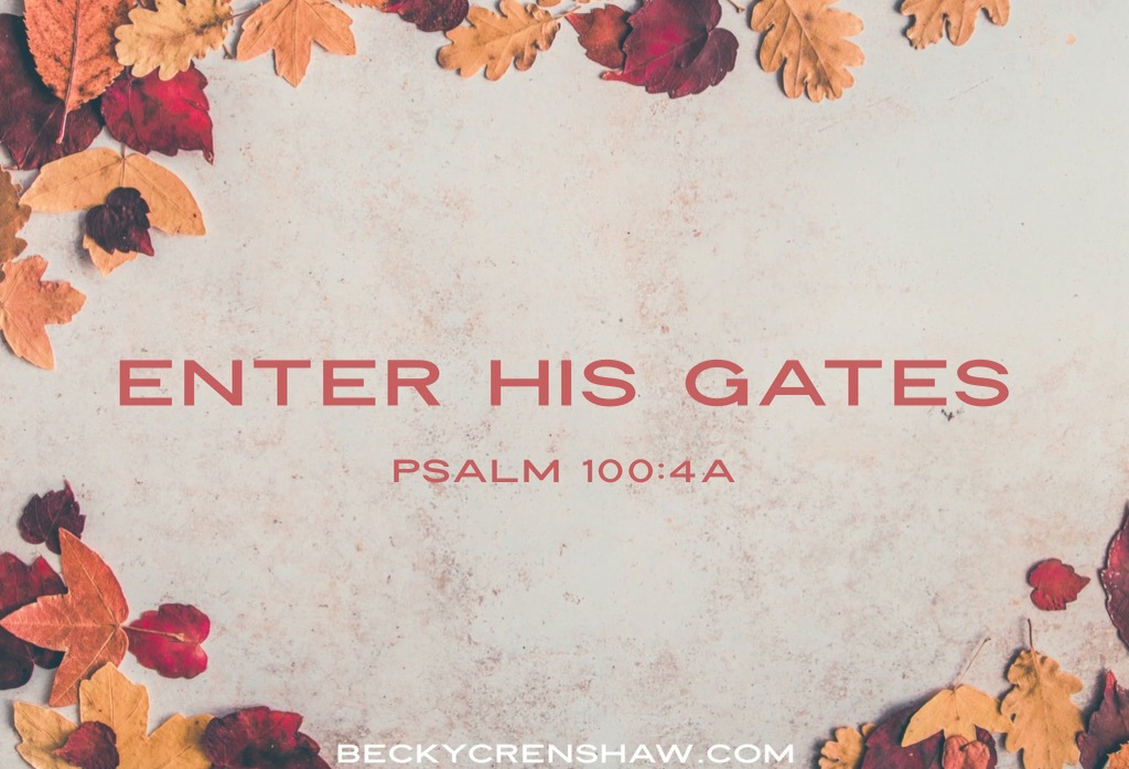 Enter His gates with thanksgiving; go into His courts with praise. Give thanks to Him and praise His name. Psalm 100:4