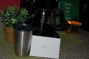 While we are making lists, Brent will find this by his Eddie Bauer mug this morning. A little list of 10 things I love about him. They range from silly to serious. It took me, maybe, five minutes. Just a way to encourage him and pursue this “beautiful and priceless gift” of marriage.