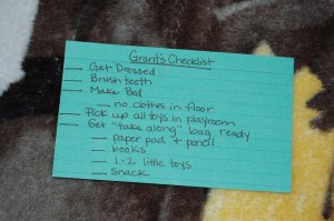 Next, the book suggests giving each child an index card checklist. Very effective. We didn’t go anywhere until every one had completed their list. I barely had to do a thing for them. They were very motivated.