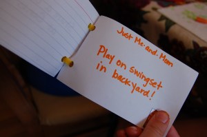 I allowed each boy to pick their ideal day of the week to have their date with Mommy. Grant picked Monday and Ethan chose Friday. So now, MWF will be mommy dates! Arp encourages mom’s to capitalize on these times bu engaging in deeper conversations with each child. To ask questions about them and listen well.
