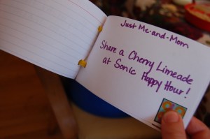 Brent and I decided on pursuing the special person parties and little surprise notes for each boy.