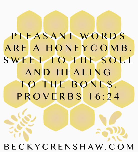Pleasant words are a honeycomb. Sweet to the soul and healing to the bones. Proverbs 16:24