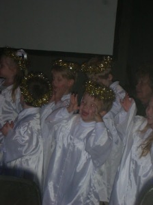 Jonah is singing, “Happy Birthday Jesus”. This is so precious I could cry. (I bet you did Kristen!!)