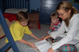 Before bed we played a gratefulness game suggested in the article. It is much like “I Spy.” Begin by saying, “I am thankful for something in this room…” Offer clues until your child guesses the object (or person!). We were thankful for our van, our house, people in our family, etc. Ethan was particularly thankful for his Transformers calendar. Hilarious.