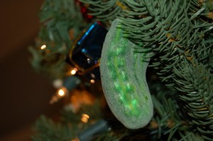 One of Erin and Brian’s traditions on Christmas morning is the “Pickle” gift. Erin will hide this ornament somewhere in the tree and the first to find it gets an extra present!! Cute!