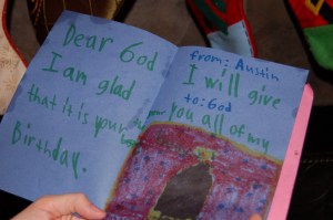 Each person in the family gives Jesus something back for Christmas. They write down what they want to give and stick it in the stocking. Erin keeps the papers placed inside from year to year.