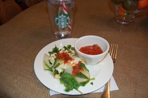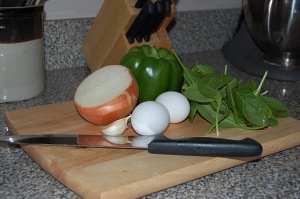 (breakfast: Eggs with sauteed spinach, garlic & onion. A side of fresh salsa)