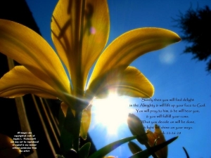 Surely then you will find delight in the Almighty and will lift up your face to God. You will pray to him, and he will hear you, and you will fulfill your vows. What you decide on will be done, and light will shine on your ways. Job 22:26-28